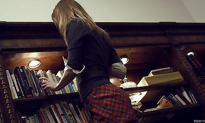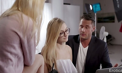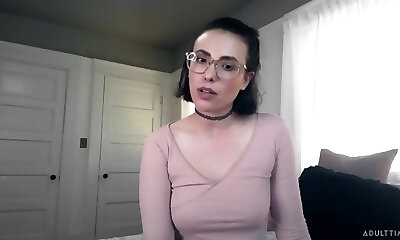 Busty blonde doctor with glasses, Brigitta likes to feel warm cum all over her all-natural boobs