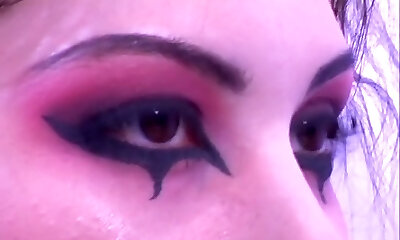 Young Goth Puts on Dark Red Lipstick and Plays with Huge Puffy Nips