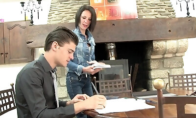 Naughty stepmom in sexy lingerie Aaliyah Love fondles her ass on fuck-stick and gives a blowjob