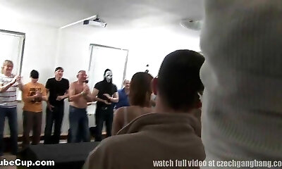 Tons of dudes are lined up and watching naked girlfriends Diamond Kitty, Jada Stevens and Jennifer Dark having fun nude.