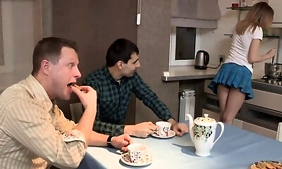 First-ever time anal on the kitchen with hot teen Light-haired Polly Yangs