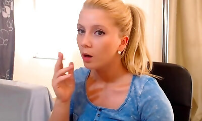 Cute light haired bosomy web cam girl was masturbating after disrobing