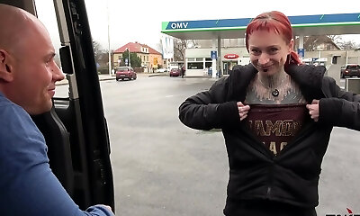 Downright Pierced and Tattooed Wierd Creature Rock the Cock in Driving Van