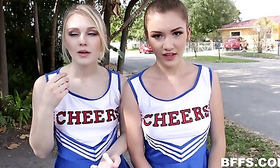 A duo of sexy cheerleaders are having one wicked hot FFM threesome