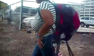Cute filly jerks her friend's bone and receives a indeed messy facial on the street