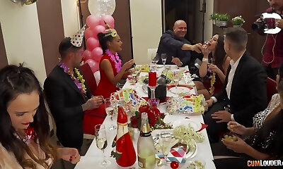 Kinky teen slut with great juggs and a tight beautiful pussy enjoying an extraordinaire gangbang