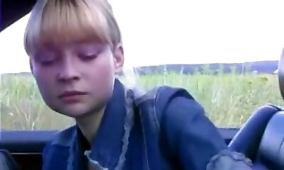 Splendid teen in cute panties gives me a blowjob and gets fucked doggystyle in my car cabin