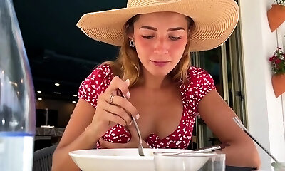 Outdoors video of unexperienced Alexandra getting cum in mouth. POV