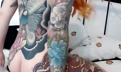Fabulous pornstars Jessica D'Vine and Tabitha James in crazy tattoos, dildos/toys xxx gig